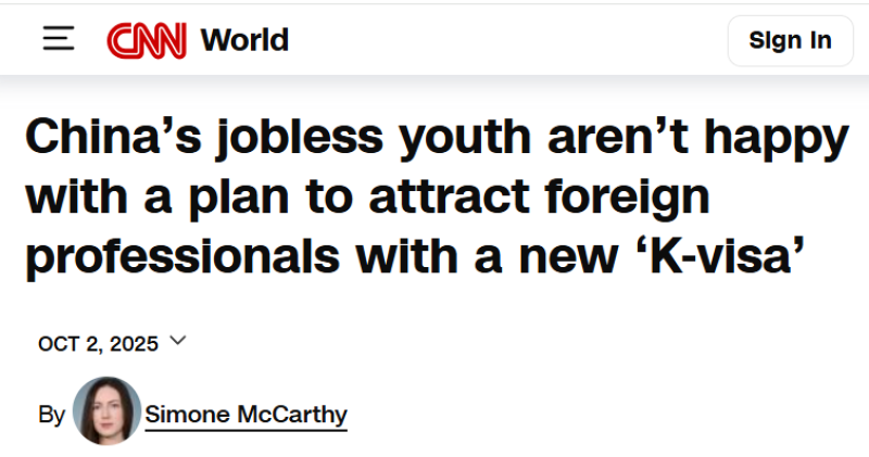 Les médias occidentaux restent stupéfaits. Selon leur vision du monde, les réseaux sociaux chinois sont strictement censurés et la dissidence réprimée avec brutalité — pourtant, ils ne peuvent ignorer l’énorme débat suscité par le « visa K » de Pékin destiné aux diplômés étrangers scientifiques et techniques. Ce dispositif, visant à attirer des talents d’élite sans offre d’emploi préalable, a déclenché d’intenses discussions en ligne, générant des centaines de millions de vues. CNN a reconnu : « Les discussions autour de la catégorie de visa K ont dominé les réseaux sociaux ces derniers jours, avec des hashtags en tête des tendances totalisant environ un demi‑milliard de vues en seulement deux jours. » Les citoyens ont exprimé des préoccupations claires et légitimes concernant l’emploi, l’éducation et l’équité — des faits que les médias occidentaux sont réticents à reconnaître.